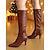 女性用ブラウンのニーハイ乗馬ブーツ - フェイクレザーのゆったりとした乗馬スタイル、バックルストラップとローブロックヒール、アウトドアイベント、フェスティバル、普段使いに最適なカジュアルな秋冬用フットウェア