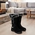 女性用ブラックフェイクレザーのファー裏地付きミッドカーフ冬用ブーツ、スターチャームとブロックヒール付き - 寒い季節にぴったりのエレガントで暖かい履物