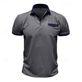 男性用 ポロ ゴルフシャツ ビジネス カジュアル クラシック 半袖 ファッション 純色 ボタン ポケット 夏 春 レギュラー デニムブルー レッド ダークブルー ダークグレイ ライトグレー グリーン ポロ