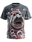 クリスマス 男性用 カバ Tシャツ 半袖 Tシャツ 3Dプリント クルーネック シャツ 日常 デザイナー アーティスティック バケーション パーティー ストリート ブルー ダックグレー オールシーズン 衣類 S M L XL XXL XXXL