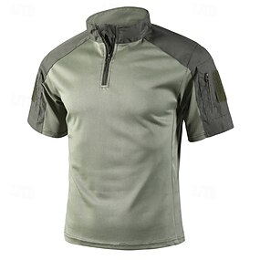 男性用 タクティカルポロ アウトドアシャツ スポーツ 日常 バンドカラー 半袖 ファッション ベーシック カラーブロック パッチワーク 夏 レギュラー ブラック ライトグリーン ダークグリーン グリーン カーキ色 アーミーグリーン タクティカルポロ