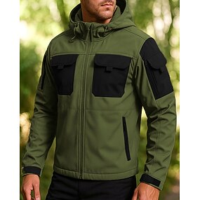 男性用 アウトドアジャケット ハイキングパーカー タクティカルジャケット アウトドア 保温 フリースライナーつき ポケット フード付き 冬 秋 純色 活発的 スポーツ レギュラー ブラック ダークグリーン カーキ色 ジャケット