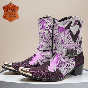 メンズのマルチカラーのスネークプリントブーツ - スタイリッシュな男性のためのユニークなデザインの牛革ブーツ - ファッショナブルな夜のお出かけ、パーティー、トレンディなイベントに最適