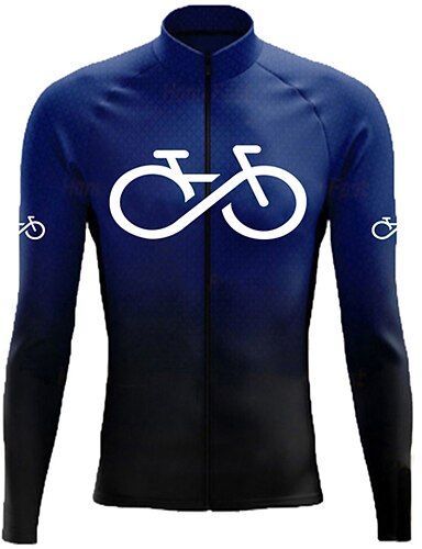 男性用 サイクリングジャージー ダウンヒルジャージー 純色 長袖 バイク トラックスーツ ジャージー コンプレッションウェア 3つのリアポケット付き マウンテンサイクリング ロードバイク 速乾性 反射性ストリップ 後ポケット 弾性ある スポーツ ダークネービー ブルー 衣類