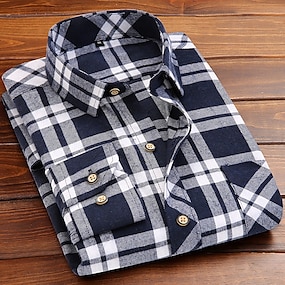 男性用 チェック ゴルフシャツ 長袖 ポロシャツ 襟付きシャツ ヴィンテージ カジュアル バケーションウェア フォーマルウェア フェスティバルウェア ボタン 3Dプリント 秋冬 ダークネイビー ブルー ブラウン