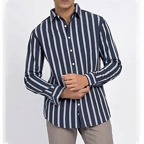 男性用 サマーシャツ カジュアルシャツ ビーチシャツ ボタンアップシャツ ルビーレッド ダークネイビー ブルー 長袖 縞柄 ラペル バケーション ハワイアン ボタンダウン 衣類 ポリエステル ファッション カジュアル 快適