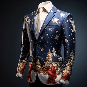 男性用 クリスマスツリー 長袖 折襟 ビジネス ワーク 仕事に着る お出かけ ボタン プリント マルチポケット