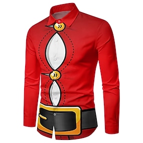 クリスマス メンズ クリスマス コスチューム プリント シャツ シャツ サンタクロース グラフィック プリント 醜いターンダウン 黒と赤 ワイン 白+赤 赤 / 白 赤 3D プリント ストリート 長袖 ボタンダウン プリント 衣類