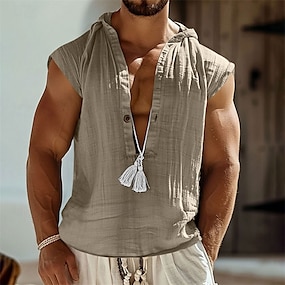 男性用 タンクトップ ベストトップ アンダーシャツ ノースリーブシャツ ノースリーブ フード付き 夏 平織り ファッション デザイナー ベーシック ボタン バケーション ストリート お出かけ ブラック ネイビーブルー グリーン メンズトップTシャツ