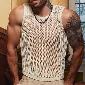 男性用 タンクトップ ベストトップ アンダーシャツ ノースリーブシャツ ノースリーブ クルーネック 春 平織り ファッション デザイナー ホール バケーション ストリート お出かけ ベージュ メンズトップTシャツ