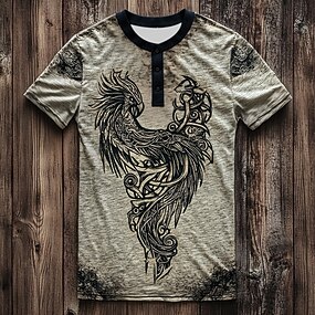 男性用 鳥 仕様 Tシャツ ヘンリーシャツ 半袖 ヴィンテージ デザイナー レトリ/ヴィンテージ ストリート カジュアル 日常 夏 春 オールシーズン カーキ色 ヘンリーカラー ヘンリー ヘンリーTシャツ