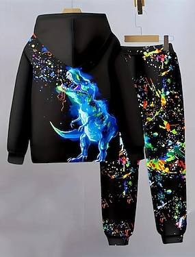 男の子 3D 動物 恐竜 スウェット&スウェットパンツセット 長袖 3Dプリント 秋 冬 活発的 ファッション クール 子供 3〜12年 アウトドア バケーション ストリート レギュラー