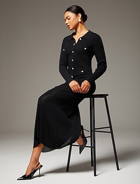 レディース ブラック ドレス ミニドレス プリーツ ボタン エレガント V ネック 長袖 ブラック ホワイト ピンク色
