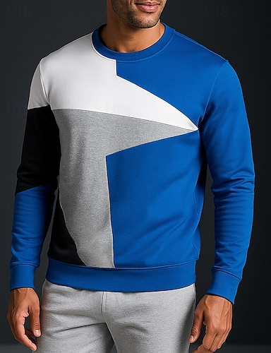男性用 プルオーバースウェットシャツ カジュアルトップス 長袖 トップス アスレイジャー 秋 パッチワーク ファッション 屋外 トラベル スポーツウェア アクティブウェア ブラック ブルー グレー
