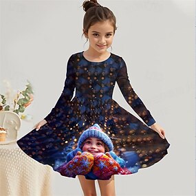 女子 3D グラフィック ドレス 長袖 夏 春 バケーション 日常 祝日 プリンセス 美しい 甘い 子供 4〜12年 カジュアルドレス A ラインドレス 膝丈 レギュラー