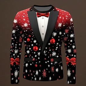 クリスマス 男性用 クリスマスツリー スノーフレーク柄 蝶ネクタイ形 Tシャツ 長袖 Tシャツ 3Dプリント クルーネック シャツ ファッション デザイナー パーティー カジュアル 祝日 ルビーレッド 夏 春 秋 衣類 S M L XL XXL XXXL