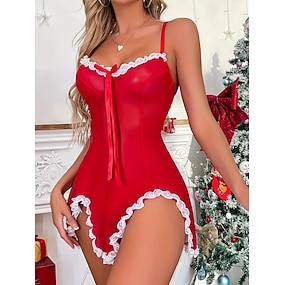 サンタクロース Mrs.Claus クリスマスパジャマ セクシーなクリスマスコスチューム 女性用 クリスマス 成人 クリスマス 新年 クリスマス・イブ 部屋着 ドレス