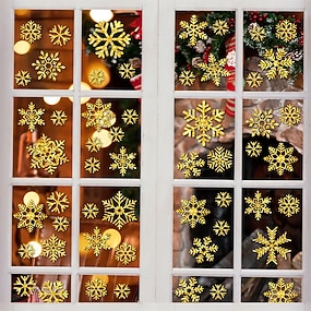 6枚の雪の結晶の窓用デカールと壁用ステッカー - キラキラ輝く金と銀の静電気でくっつく、クリスマスのお祝いの休日のガラスと壁の装飾、窓、鏡、家の装飾に最適