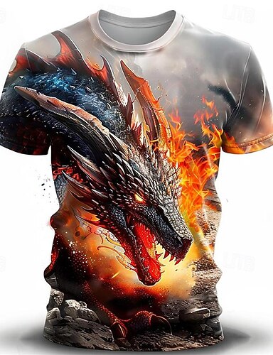 男性用 ドラゴン グラフィック シャツ Tシャツ 半袖 Tシャツ 3Dプリント ラウンドネック シャツ デザイナー カジュアル 大きくて背が高い 日常 祝日 ブラック 夏 衣類 S M L XL XXL 3XL
