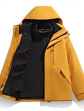 女性用 3-in-1 防水ダウンジャケット 防水 防風 ジッパー ポケット カジュアル 純色 アウトドア バケーション ストリート デイリーウェア ジッパ- レギュラー フード付き レギュラー 長袖 アウターウェア イエロー ピンク ダークピンク 春 秋