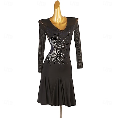 ボールルームダンス ドレス ラインストーン スプライシング 女性用 性能 訓練 長袖 スパンデックス オーガンザ