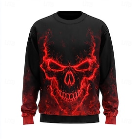 Halloween 男性用 スカル 3D スウェットシャツ カジュアル 長袖 クルーネック ルビーレッド ブルー クルーネック 3D オールシーズン デザイナー