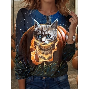 女性用 プルオーバースウェットシャツ グラフィック ハロウィーン ファッション カジュアル 長袖 クルーネック レギュラートップス カジュアル プリント ブラック ホワイト ルビーレッド ブルー パープル 夏 春 秋