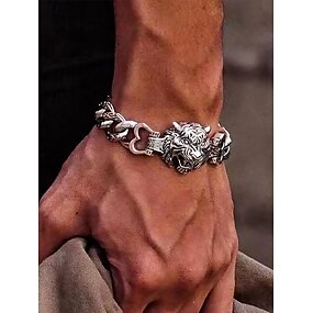 メンズハロウィンタイガーヘッドブレスレット - バイカー、パンク、コスプレ、パーティー衣装に最適なヴィンテージゴシック亜鉛合金チェーンジュエリー
