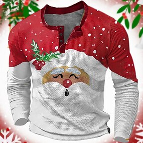 クリスマス Tシャツ メンズ Tシャツ Tシャツ ヘンリーシャツ Tシャツ グラフィック サンタクロース ヘンリー レッド ロイヤルブルー ブルー パープル ブラウン 3D プリント アウトドア クリスマス 長袖 ボタンダウン プリント 衣類 アパレル デザイナー