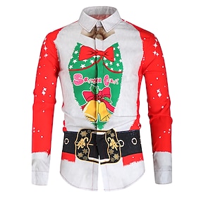 クリスマスシャツメンズシャツグラフィック醜いクリスマスボタンダウンカラーレッド3dプリントクリスマス長袖服
