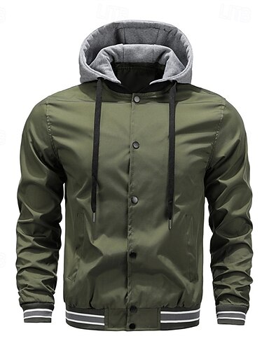 男性用 軽量ジャケット カジュアルジャケット パーカージャケット バケーション 日常 高通気性 ポケット 春 秋 縞 ファッション クラシック フード付き レギュラー ブラック アーミーグリーン ジャケット