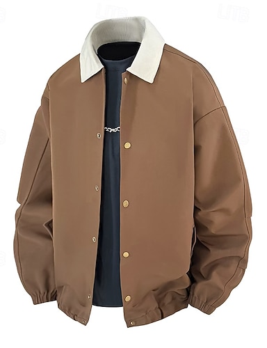 男性用 ジャケット カジュアルジャケット アウトドア バケーション ウォーム ジッパー ポケット 秋 冬 平織り ファッション ストリートファッション スタンドカラー レギュラー ブラック ブラウン コーヒー ジャケット