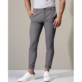 男性用 スリム ズボン チノパン チノパンツ カジュアルパンツ ポケット 平織り 履き心地よい ソフト 全長 アウトドア 日常 お出かけ ファッション ストリートファッション ブラック ホワイト マイクロエラスティック