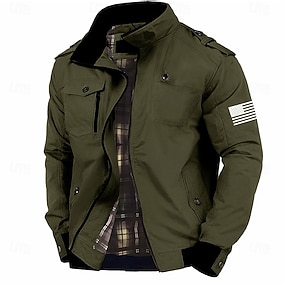 男性用 グラフィック アメリカの米国旗 ジャケット コート ミリタリー 保温 快適 カジュアル スポーツ・アウトドア キャンピング&ハイキング サイドポケット ジップフロント 秋 冬 スタンドカラー 長袖 カーキ色 アーミーグリーン