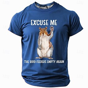 男性用 動物 おかしい Tシャツ 半袖 Tシャツ 3Dプリント クルーネック シャツ 誇張された デザイナー パーティー ストリート カジュアル ブラック ルビーレッド ブルー 夏 春 オールシーズン 衣類 S M L XL XXL XXXL