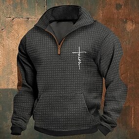 男性用 スウェットシャツ クォータージッパースウェットシャツ ブラック グレー ハーフジッパー 平織り スポーツ 日常 祝日 ストリートファッション クール レトロ風 冬 春 & 秋 衣類 パーカー トレーナー 長袖
