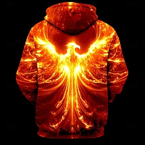男性用 3D 火炎 フェニックス パーカー スウェットシャツ クール パーティー クルーネック クラブ ストリートウェア イエロー オレンジ ドローストリング 秋 冬 デザイナー