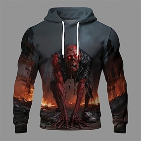 Halloween 男性用 モンスター パーカー ファッション 日常 フード付き バケーション パーティー ストリートウェア グレー ドローストリング ポケット プリント 秋 冬 デザイナー