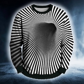 男性用 幾何学模様 3D印刷 視覚詐欺 スウェットシャツ カジュアル クルーネック バケーション パーティー 贈り物 ブラック ブルー クルーネック 3D オールシーズン デザイナー