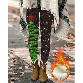 女性用 レギンス 心地よいレギンス ファッション ストリートファッション ベーシック 全長 ハイウエストPantsクリスマス グラフィック クリスマスツリー プリント フリース 保温 快適 伸縮性あり アウトドア ストリート 祝日 ホワイト 秋 冬 スリムフィット