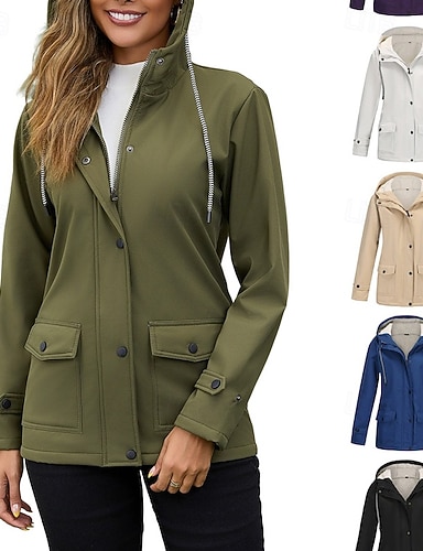 女性用 カジュアルジャケット 防水レインジャケット レインコート 防水 防風 ジッパー ポケット ファッション 屋外 平織り お出かけ 週末 ジッパ- レギュラー フード付き レギュラー 長袖 アウターウェア ブラック バーガンディー グリーン 秋 冬