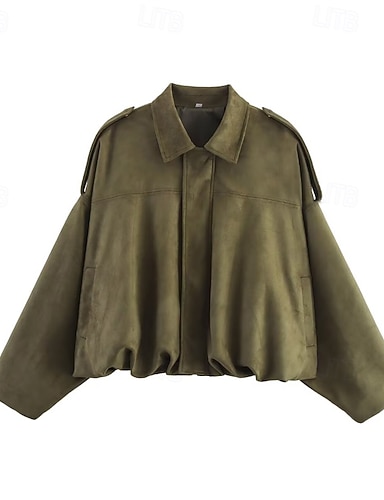 女性用 ジャケット カジュアルジャケット 保温 快適 ジッパー ポケット カジュアル 平織り バケーション デイリーウェア お出かけ 週末 レギュラー 折襟 ルーズフィット 長袖 アウターウェア ブラウン アーミーグリーン コーヒー 秋 冬