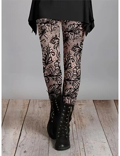 女性用 スラックス レギンス 心地よいレギンス 旅行度假风 ヴィンテージ ストリートファッション 足首丈 ナチュラルウエスト グラフィック フラワー 弾性ウエスト プリント 快適 屋外 高弾性 アウトドア バケーション ストリートウェア ライトグレー 秋 冬 レギュラー