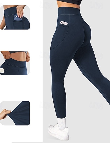 女性用 チノパン レギンス 快適なフリース裏地 旅行度假风 ヴィンテージ ストリートファッション 全長 ミディアムウエスト 平織り ポケット 弾性ウエスト 保温 快適 マイクロエラスティック 伸縮性あり アウトドア バケーション 日常 クラレット 暗灰色 ブラック ダークネイビー 秋 冬 レギュラー