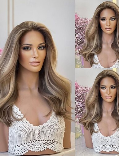 未処理のバージンヘア 13x4レースフロント かつら ミドル部 ブラジリアンヘア ウェーブ ブロンド ブラウン マルチカラー かつら 130% 150% 髪の毛の密度 ハイライト / バレイヤージュヘア ナチュラルヘアライン グルーレス あらかじめ摘まれた 用途 女性 ロング 人毛レースウィッグ