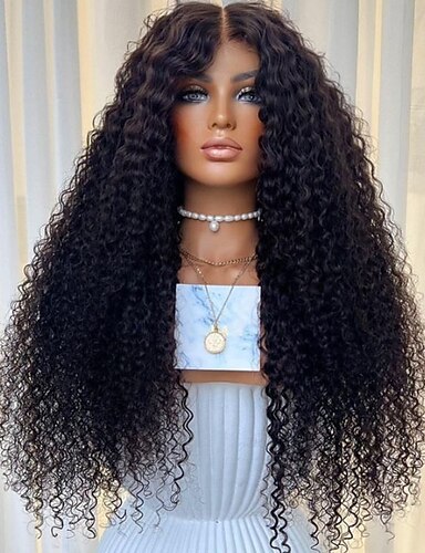 5*5 人毛レースウィッグ ナチュラルカラー 縮れ カーリー レースウィッグ 200% 密度