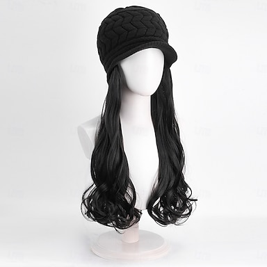 帽子 ウィッグ ビーニー 帽子 ヘアー ロング ウェーブ エクステンション ニット ポンポン 帽子 女性用 冬用 黒