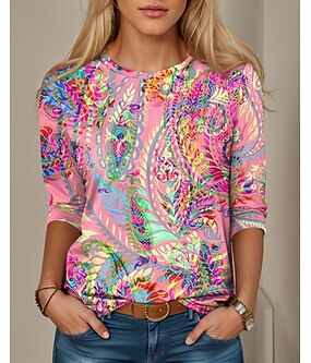 女性用 Tシャツ グラフィック 動物 幾何学模様 ヴィンテージ スタイリッシュ クラシック 半袖 クルーネック ラウンドネック レギュラートップス 日常 週末 プリント イエロー ルビーレッド ブルー パープル グリーン 夏 春