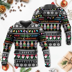 クリスマス メンズ クリスマス シーン 3D パーカー プルオーバー ブラック グレー フード付き サンタクロース グラフィック プリント スノーフレーク プリント デイリー スポーツ 3D プリント ベーシック ストリートウェア