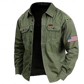 男性用 アメリカの米国旗 ワークシャツ ウエスタンシャツ カーゴシャツ 長袖 カジュアル ミリタリー スポーツ お出かけ 冬 春 & 秋 折襟 プリント アーミーグリーン ブルー カーキ色